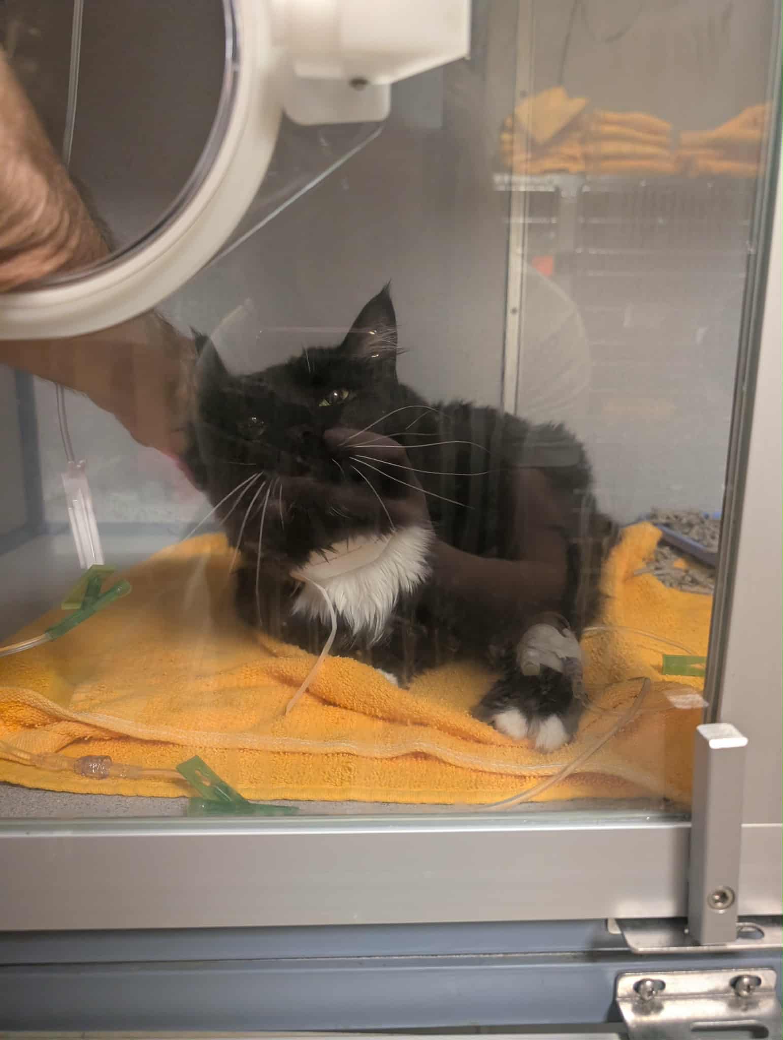 I went to visit him that night and he was hanging out in an oxygen cage with all his little IV’s hooked up. He seemed to be in good spirits and I was so happy to see him! I got to open the little door and give him a ton of love and pets and he definitely perked up seeing me! It made me happy to see that he was breathing easier in there and we were about to have more answers the next day. It was definitely hard leaving him after that visit, but at least I made him happy!