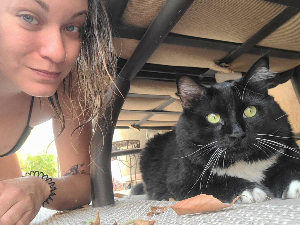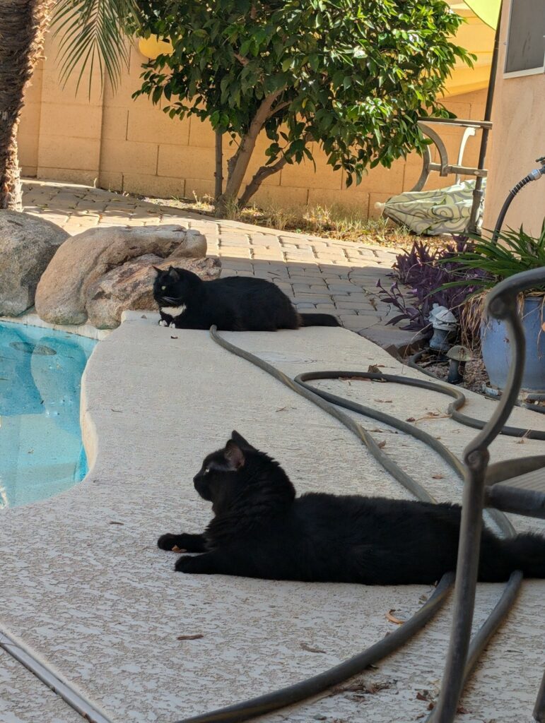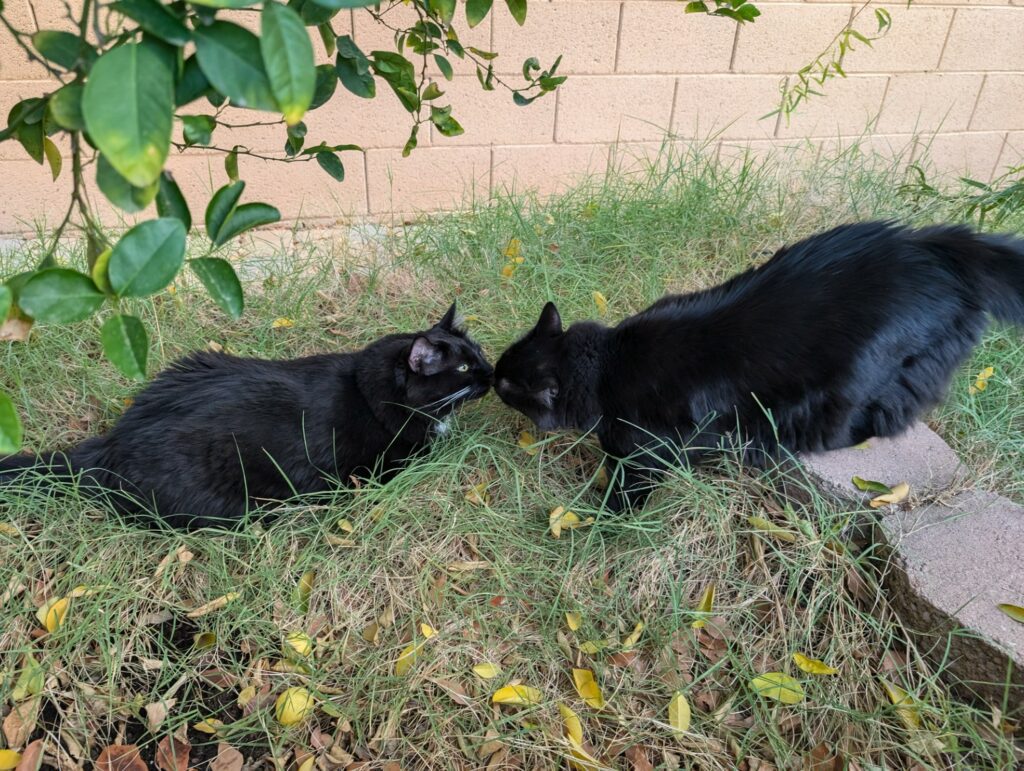 Lunar loved being outdoors enjoying the fresh air and smells. He’s played with lizards in the backyard and his favorite thing was eating the grass! He would chow down! And then would relax and enjoy the breeze. I LOVED having this time with them. It meant a lot to them because they were born outside. Their mom was a stray. It’s engrained into them especially.